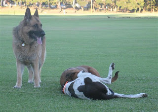 Rudy, being closely observed by Ari to make sure he doesn't pee in the wrong spot: