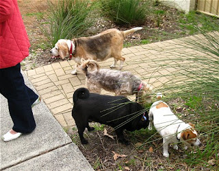 Feeding time. John is here - Allie, Harry and Ari line up for their share: